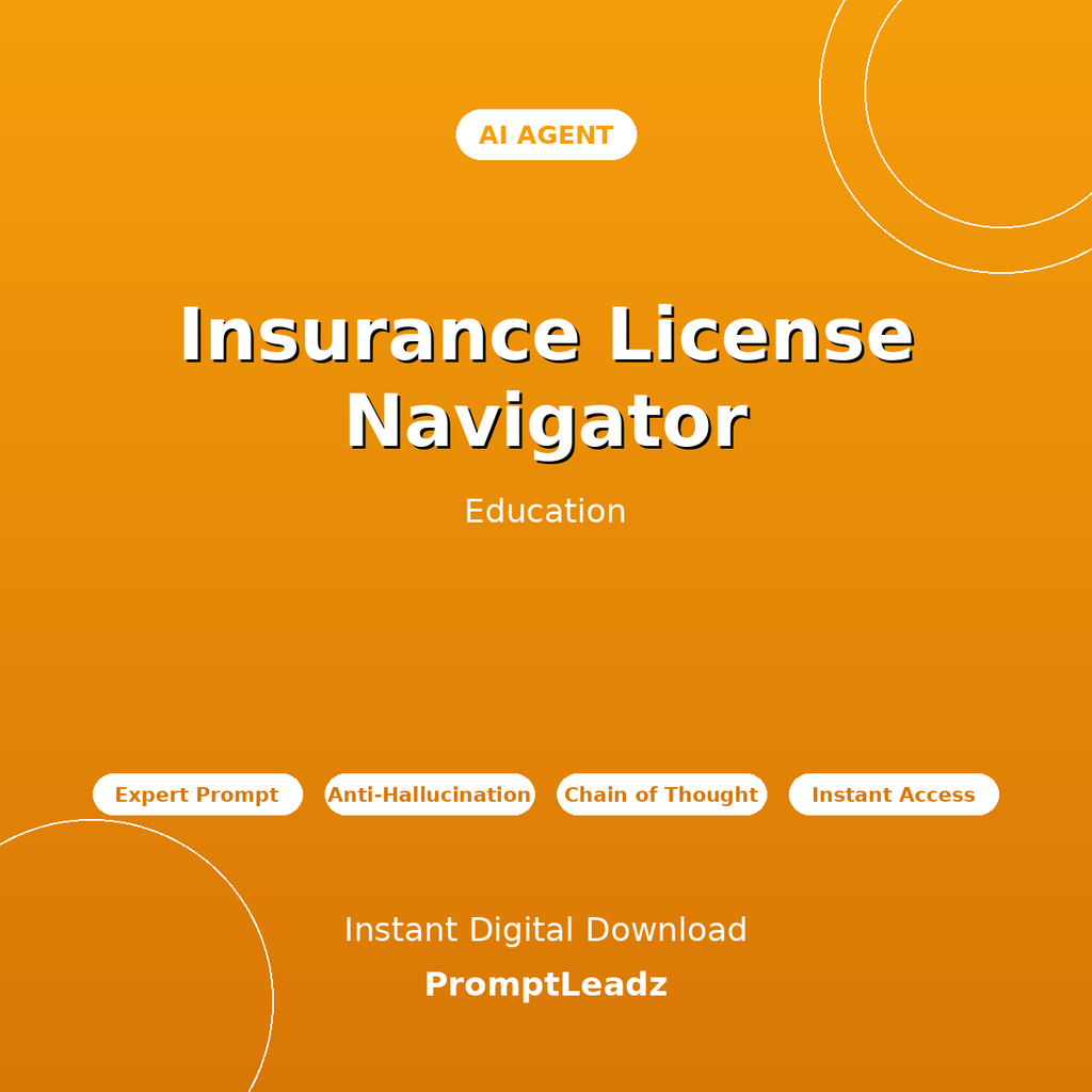 Get instant expert guidance on insurance license, insurance exam, insurance certification, and licensing. This professionally-crafted AI agent transforms ChatGPT, Claude, Gemini, or Grok into your personal education expert.