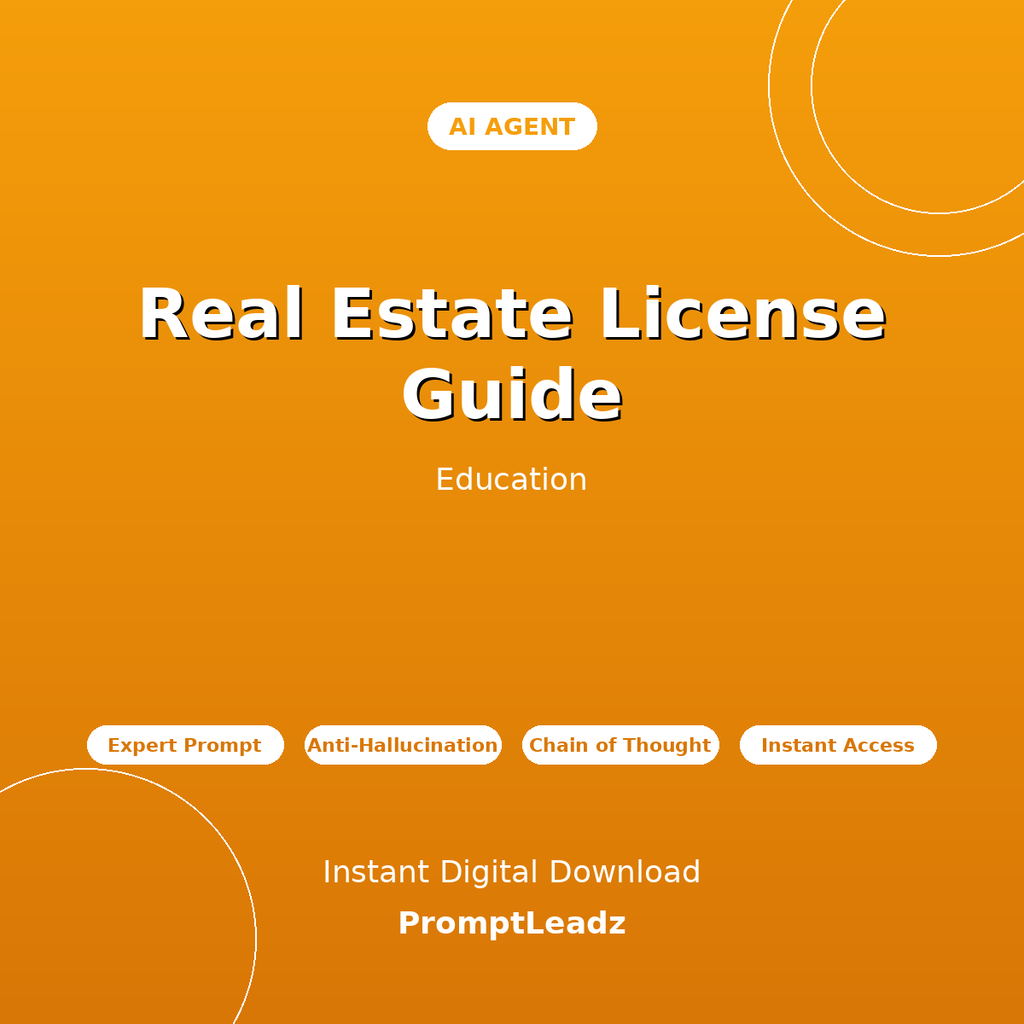 Get instant expert guidance on real estate license, RE exam, real estate certification, and RE licensing. This professionally-crafted AI agent transforms ChatGPT, Claude, Gemini, or Grok into your personal education expert.