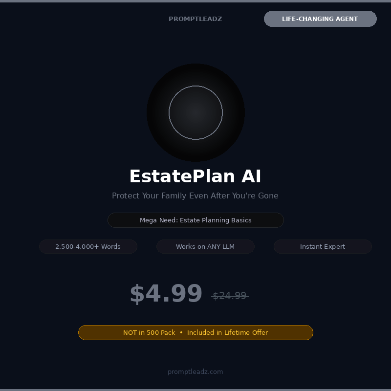 Nobody wants to think about death — but your family will suffer without a plan. This AI agent demystifies estate planning: wills, trusts, beneficiaries, power of attorney, healthcare directives, and protecting your legacy without spending $10K on a lawyer.