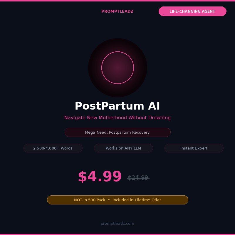 The first year of motherhood is beautiful and brutal. This AI agent helps with postpartum mood disorders, breastfeeding challenges, sleep deprivation survival, identity shifts, relationship changes, and building a support system when you feel utterly alone.
