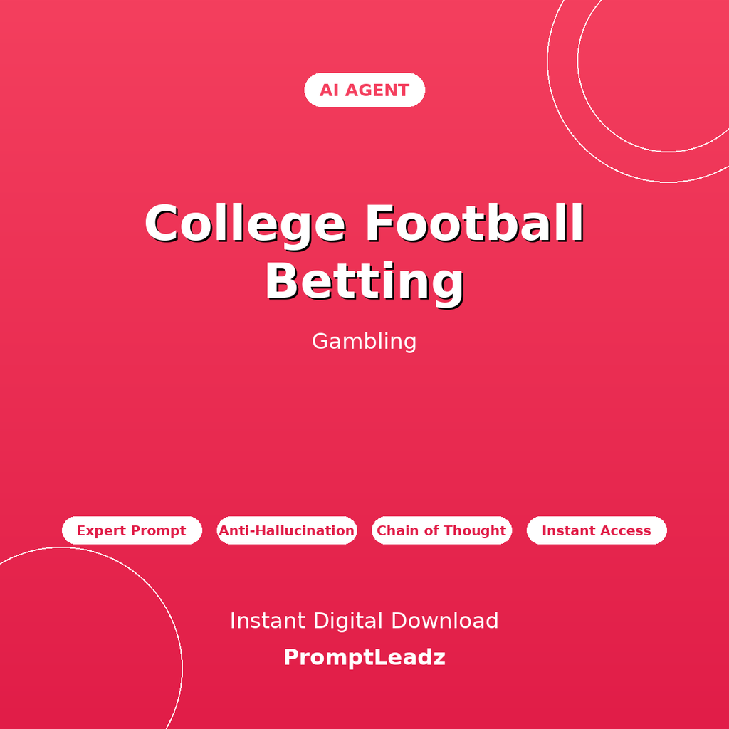 Get instant expert guidance on college football betting, CFB betting, spread analysis, and CFB strategy. This professionally-crafted AI agent transforms ChatGPT, Claude, Gemini, or Grok into your personal gambling expert.
