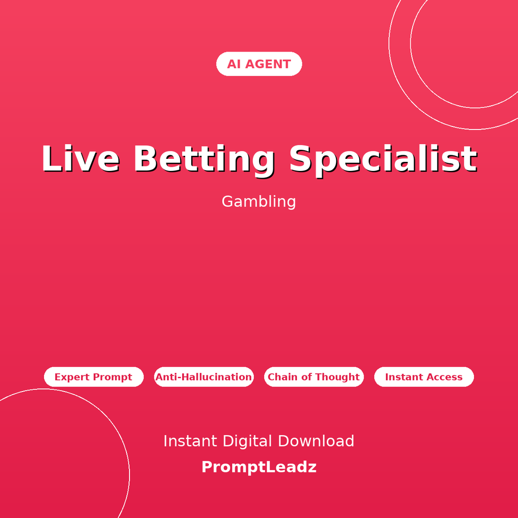 Get instant expert guidance on live betting, in-play betting, real-time betting, and live betting strategy. This professionally-crafted AI agent transforms ChatGPT, Claude, Gemini, or Grok into your personal gambling expert.