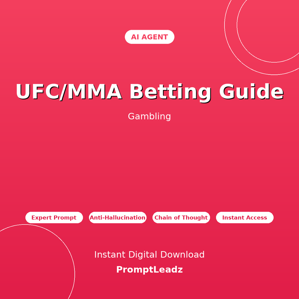 Get instant expert guidance on UFC betting, MMA betting, fight analysis, and combat sports betting. This professionally-crafted AI agent transforms ChatGPT, Claude, Gemini, or Grok into your personal gambling expert.