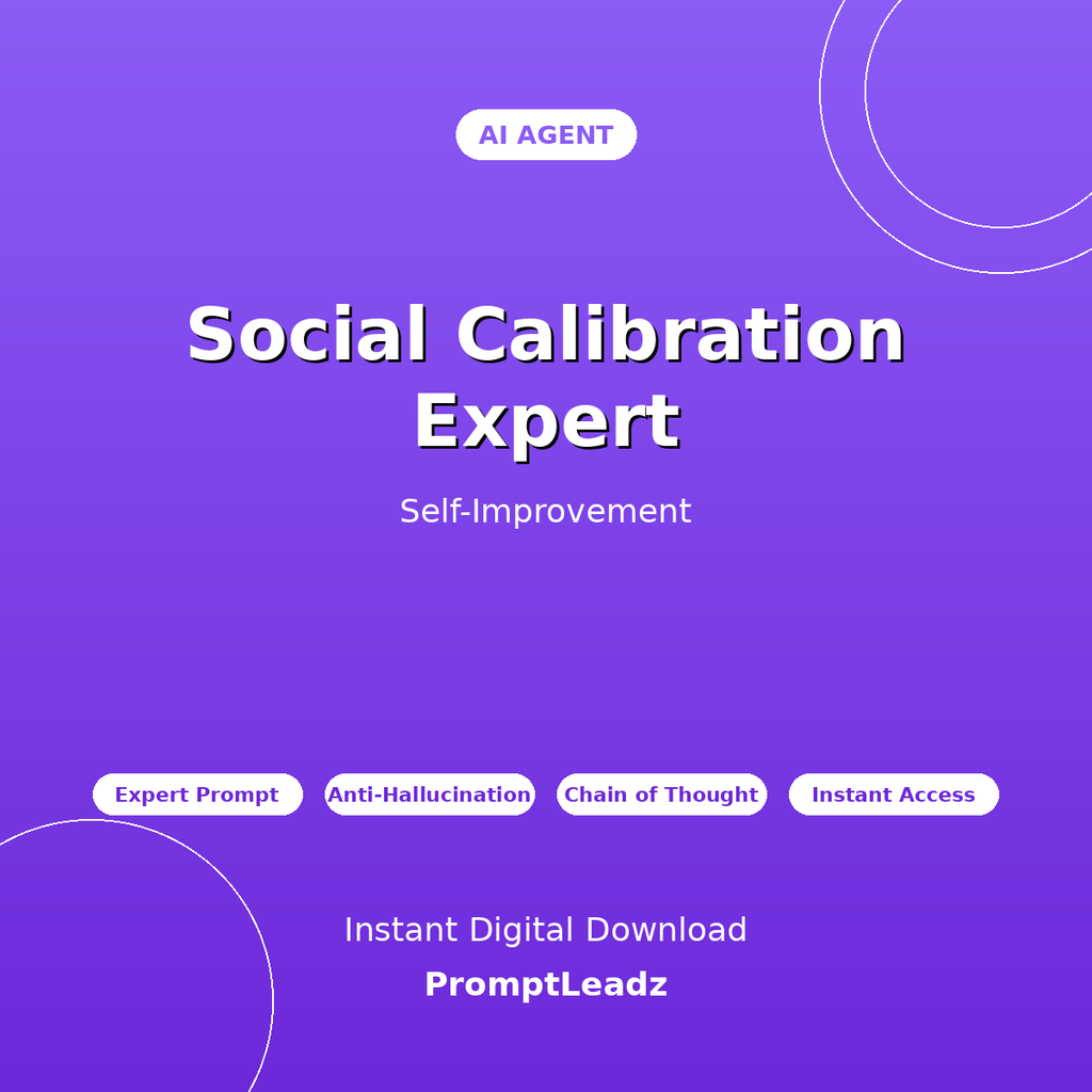 Obtén orientación experta instantánea sobre calibración social, interpretación de situaciones sociales, respuestas apropiadas, conciencia social y adaptación a cualquier entorno. Este agente de IA profesional transforma ChatGPT, Claude, Gemini o Grok en tu experto personal en superación.