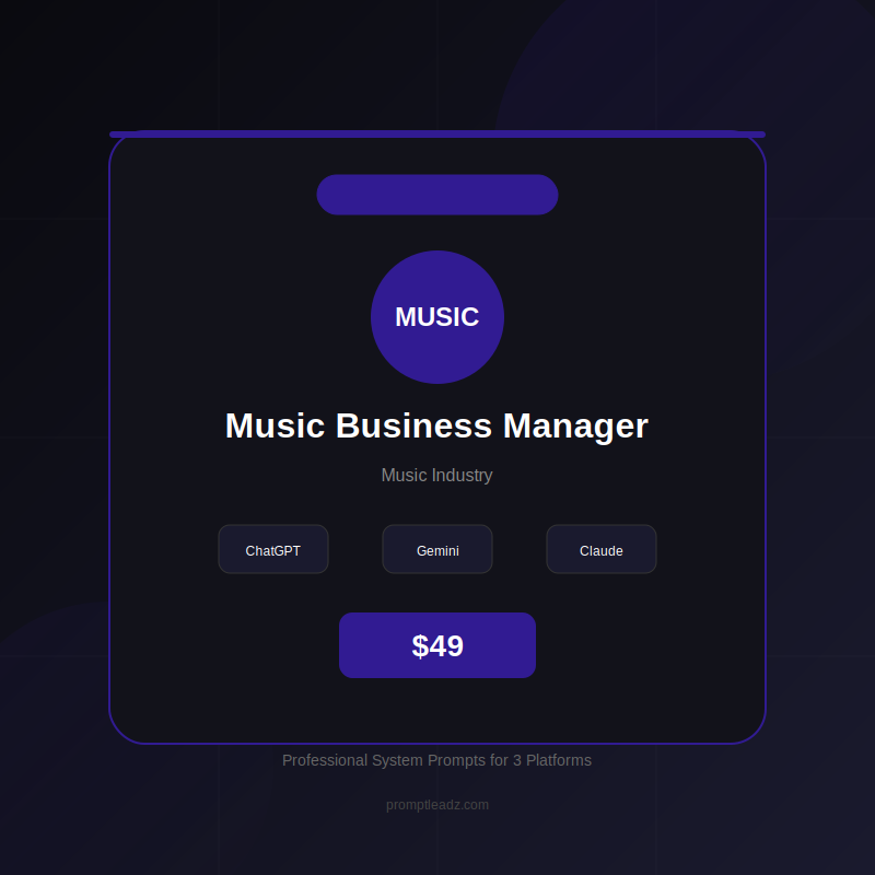 Accédez instantanément à votre agent IA Music Business Manager avec des invites système pour ChatGPT, Gemini et Claude.