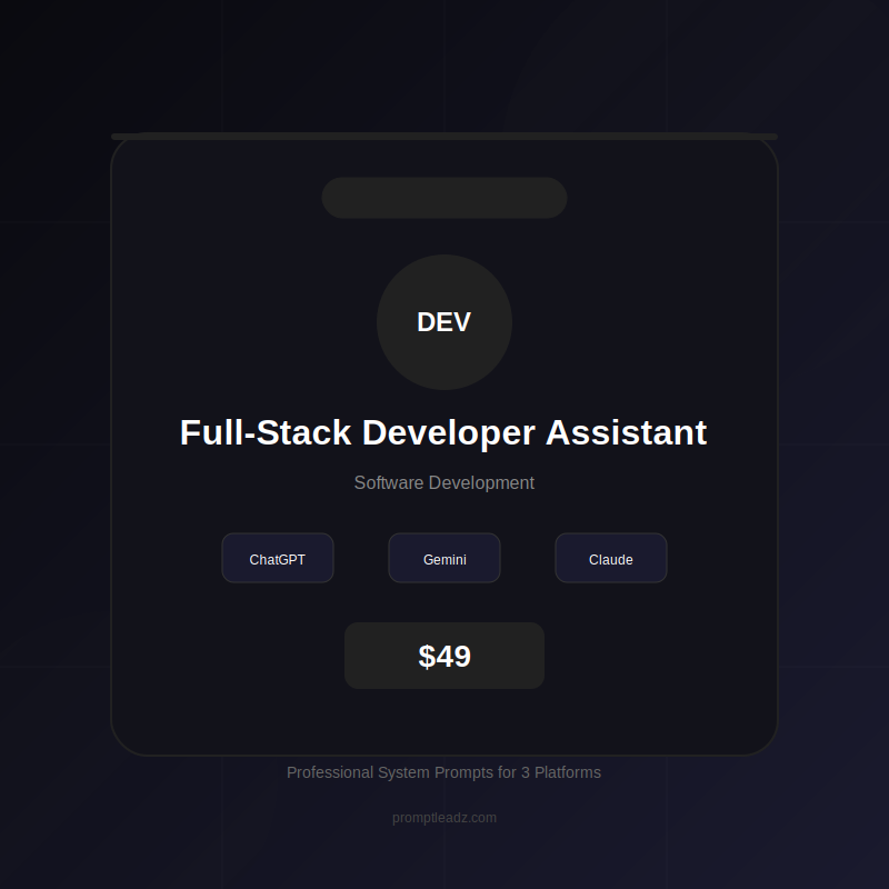 ChatGPT, Gemini, और Claude के लिए सिस्टम प्रॉम्प्ट के साथ अपने Full-Stack Developer Assistant AI Agent तक तुरंत पहुँच प्राप्त करें।