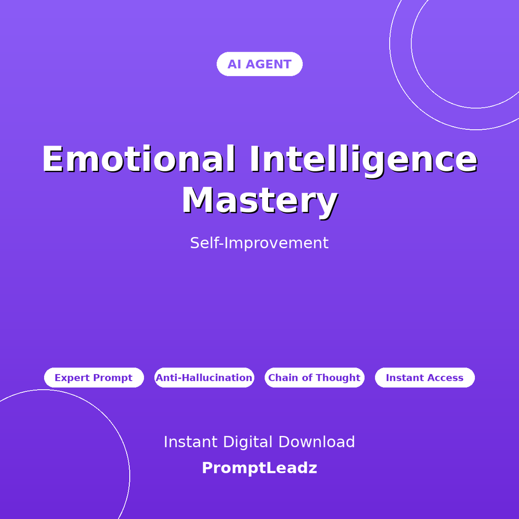 Get instant expert guidance on developing emotional intelligence, emotional awareness, empathy building, emotional regulation, social skills enhancement, and EQ in leadership. This professionally-crafted AI agent transforms ChatGPT, Claude, Gemini, or Grok into your personal self-improvement expert.