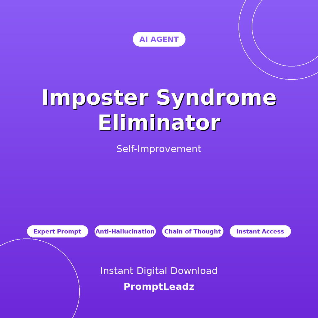 Get instant expert guidance on overcoming imposter syndrome, recognizing achievements, building authentic confidence, managing self-doubt, and thriving despite imposter feelings. This professionally-crafted AI agent transforms ChatGPT, Claude, Gemini, or Grok into your personal self-improvement expert.
