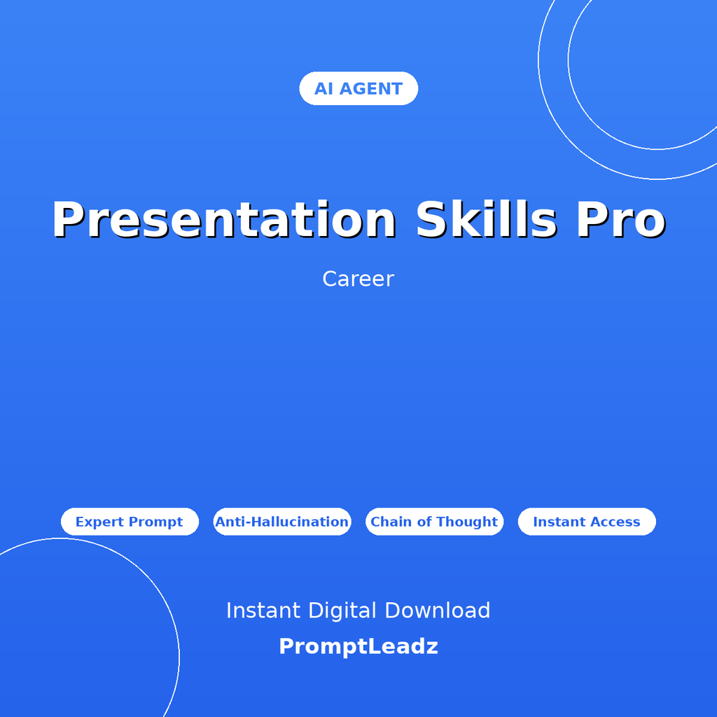 Get instant expert guidance on presentation mastery, slide design, delivery confidence, audience engagement, and impactful presentations. This professionally-crafted AI agent transforms ChatGPT, Claude, Gemini, or Grok into your personal career expert.