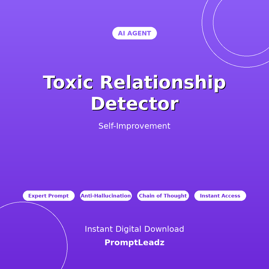 Get instant expert guidance on recognizing toxic relationships, red flag identification, healthy relationship markers, and protecting yourself from toxic people. This professionally-crafted AI agent transforms ChatGPT, Claude, Gemini, or Grok into your personal self-improvement expert.