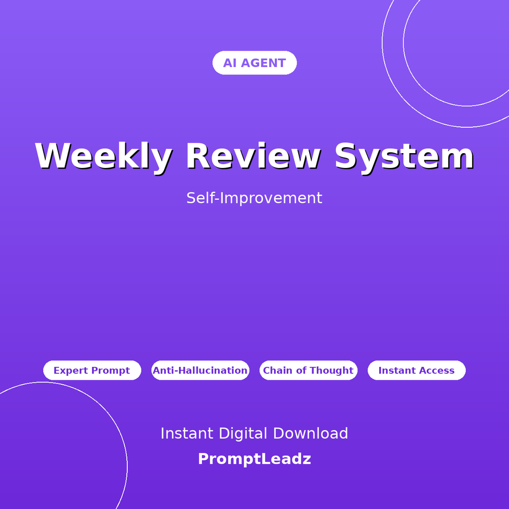 Get instant expert guidance on weekly review practice, reflection and planning, continuous improvement, goal tracking, and staying on course. This professionally-crafted AI agent transforms ChatGPT, Claude, Gemini, or Grok into your personal self-improvement expert.