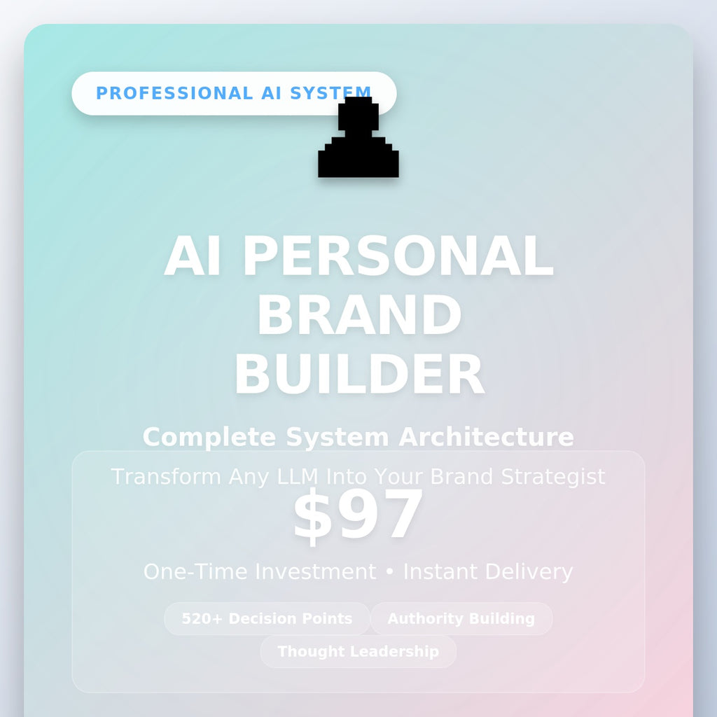 Du köper inte en prompt. Du distribuerar ett professionellt AI-intelligenssystem som fungerar på senior varumärkesstrateginivå över alla personliga varumärkesdiscipliner.