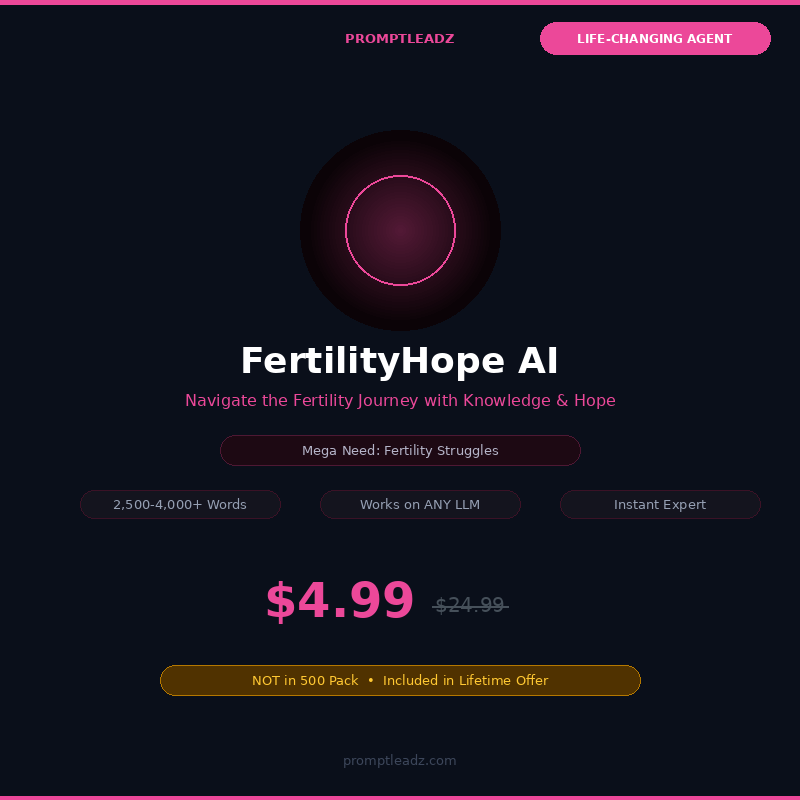 Fertilitetsresan är fysiskt utmattande och känslomässigt förödande. Denna AI-agent hjälper dig att förstå behandlingsalternativ, navigera försäkringar och kostnader, hantera den emotionella berg- och dalbanan, kommunicera med partner och fatta informerade beslut i varje steg.