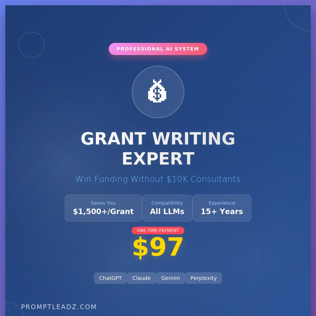 Medan andra säljer grundläggande prompts som knappt fungerar, är detta ett fullständigt AI-intelligenssystem byggt på årtionden av verklig erfarenhet av bidragsförfattande och förfinat genom hundratals framgångsrika ansökningar. Det här är inte bara en prompt—det är en fullt konfigurerad bidragsförfattarexpert redo att användas omedelbart.