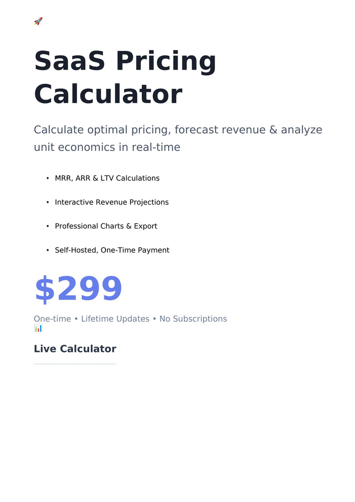"Det hÀr verktyget hjÀlpte oss att validera vÄr prissÀttningshypotes innan lansering pÄ marknaden. Vi testade 12 olika prissÀttningsmodeller pÄ en eftermiddag och identifierade den optimala balansen mellan kundanskaffningskostnad och livstidsvÀrde. Lanserades för $79/mÄnad istÀllet för vÄra planerade $49, och konverteringsfrekvenserna Àr precis vad rÀknaren förutspÄdde. Absolut mÄste för varje SaaS-grundare."
