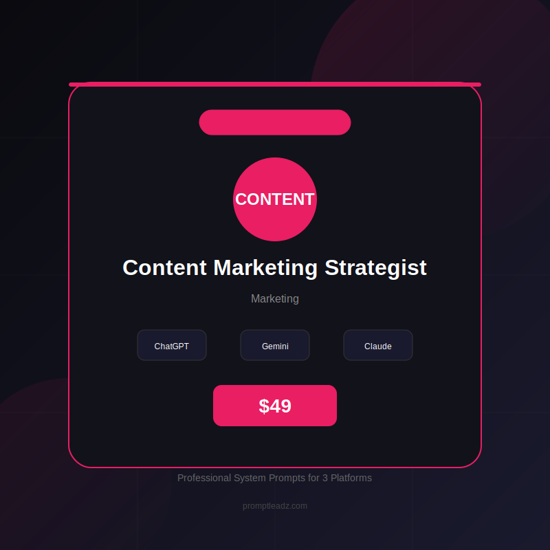 立即获取您的内容营销策略师 AI 代理,配备适用于 ChatGPT、Gemini 和 Claude 的系统提示。